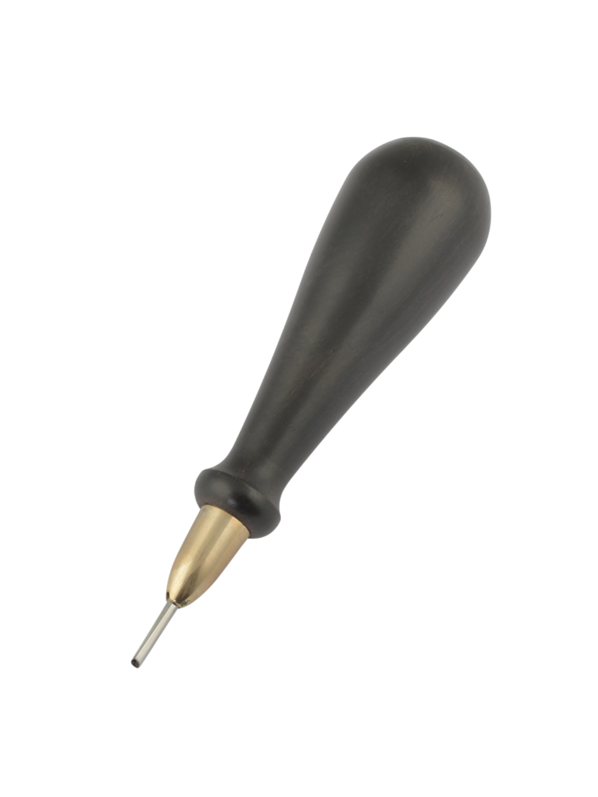 The Zengda awl is specially designed for use with French pricking irons ranging from 2.7 to 4.5 mm. It is made of tool steel and features an ebony handle. The awl tip is well polished for easier piercing of holes.